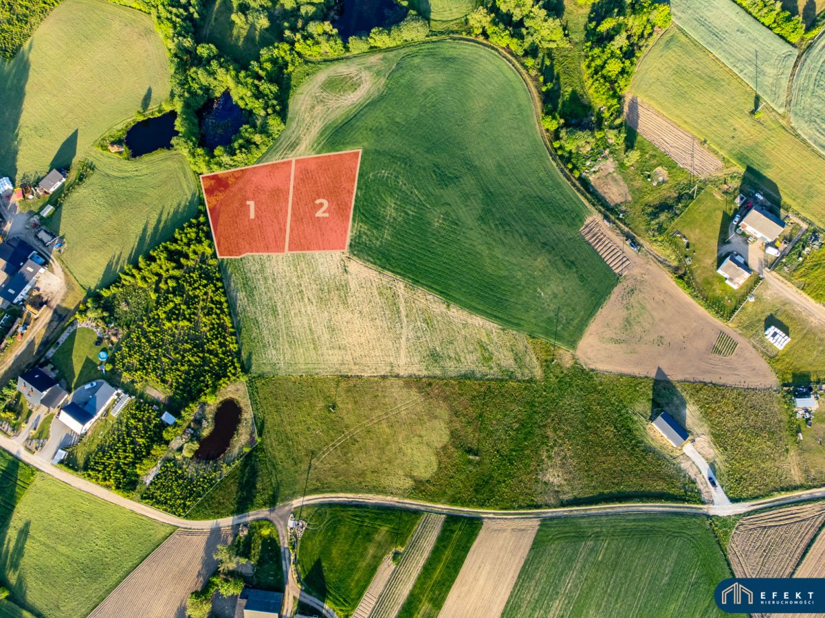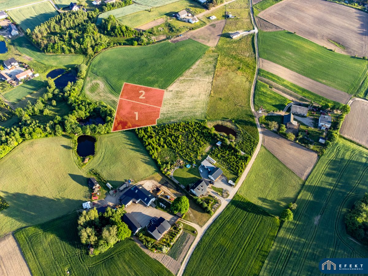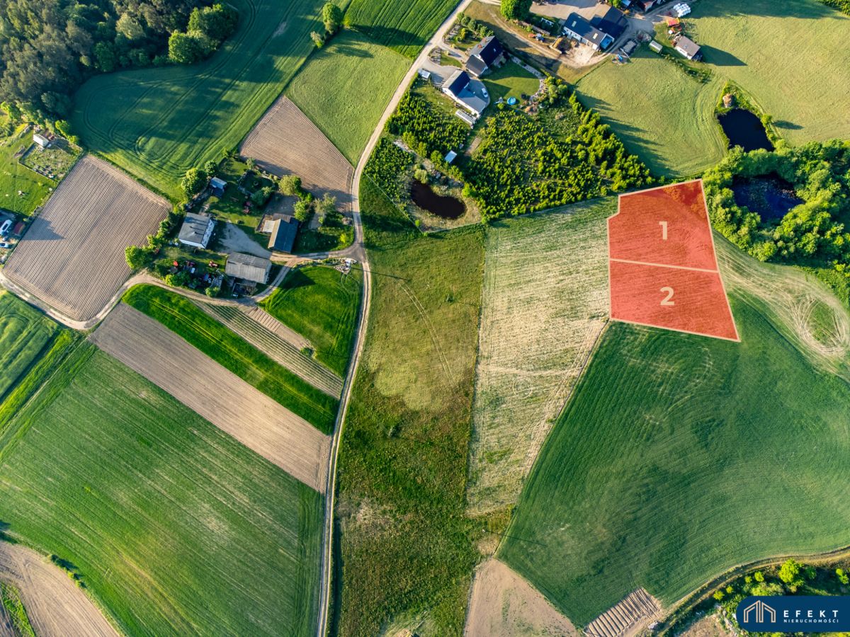 Działka ozn. cyfrą 2 położona jest na niezadrzewionym terenie, natomiast ozn. cyfrą 1 pokryta jest na niewielkim fragmencie drzewami. Okolica jest cicha i spokojna. W najbliższym sąsiedztwie nieruchomości znajdują się pola, łąki, lasy, stawy oraz luźna zabudowa mieszkaniowa jednorodzinna.